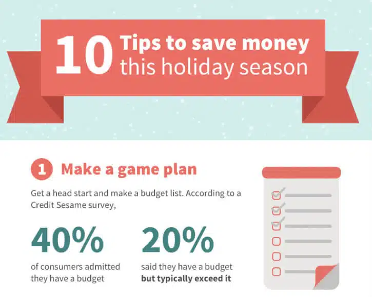 According to a recent survey from Credit Sesame, more than 38% of respondents have a holiday budget. That’s awesome! But even more exceed their budget or have no budget at all.